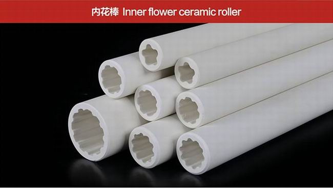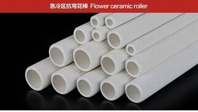 Special shaped rollers have been developed to increase the bending of the rollers used at the fast cooling zone of roller kiln .The wall thickness of the roller is indirectly increased with out increasing the area of the cross section. The bending strength of rollers against the heavy air pressure is effectively increased and the thermal shock resistance is excellent. It resolves the problem that the common rollers easily bend, crack and break when being used at fast cooling zone.